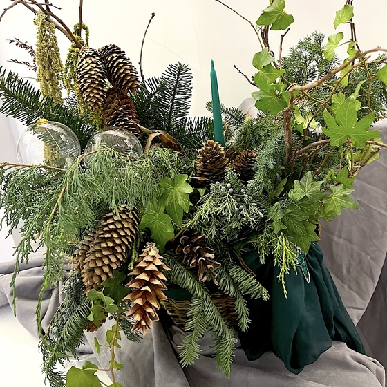 Склад: 1 рожева гортензія, 3 рожеві троянди, 5 троянд капучино, гілки евкаліпта, сухостій, пакування.