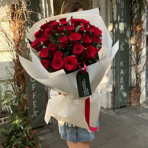 Розкішний букет із 35 червоних троянд — справжнє зізнання у почуттях без слів. Насичений аромат і глибокий червоний колір символізують пристрасть, ніжність і вірність. Ідеальний подарунок для найкоханішої людини.